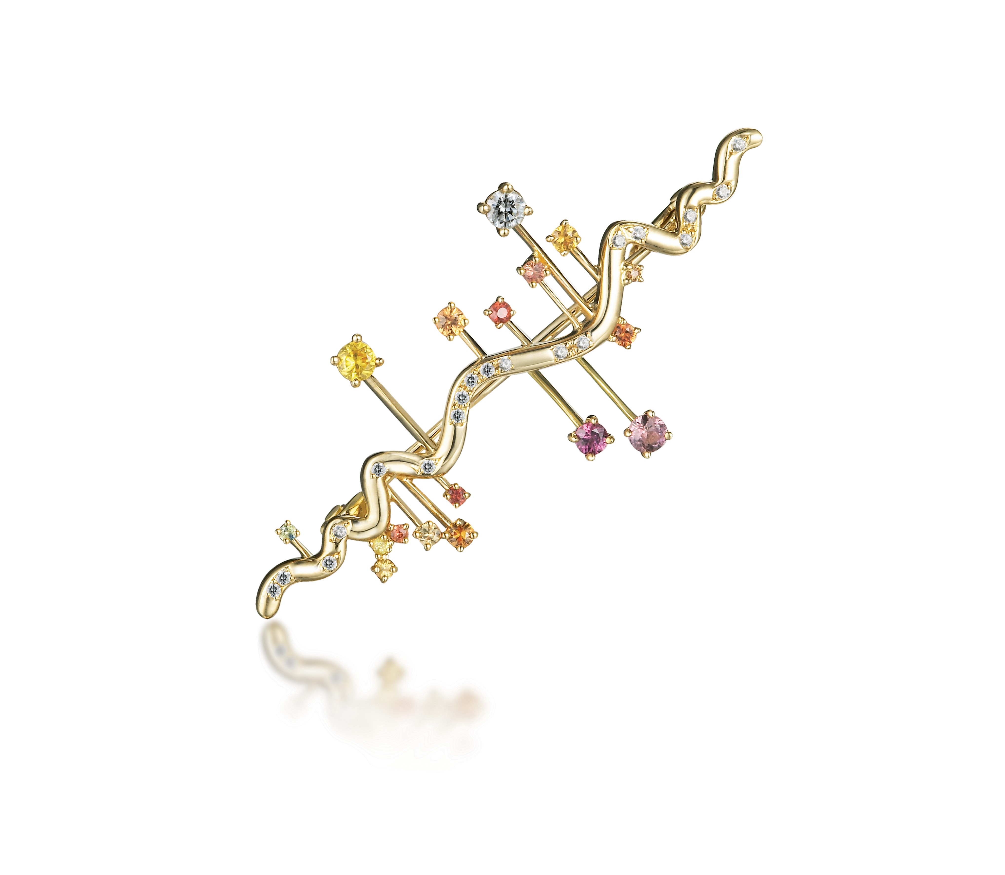 yellow gold, diamond, sapphire
